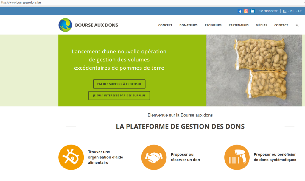 Dans une optique de lutte contre le gaspillage alimentaire et de solidarité avec les publics précaires, la plate-forme digitale de la Bourse aux dons se propose comme intermédiaire entre les producteurs et les associations d’aide alimentaire et lance une campagne dédiée à la crise des surplus de pommes de terre.