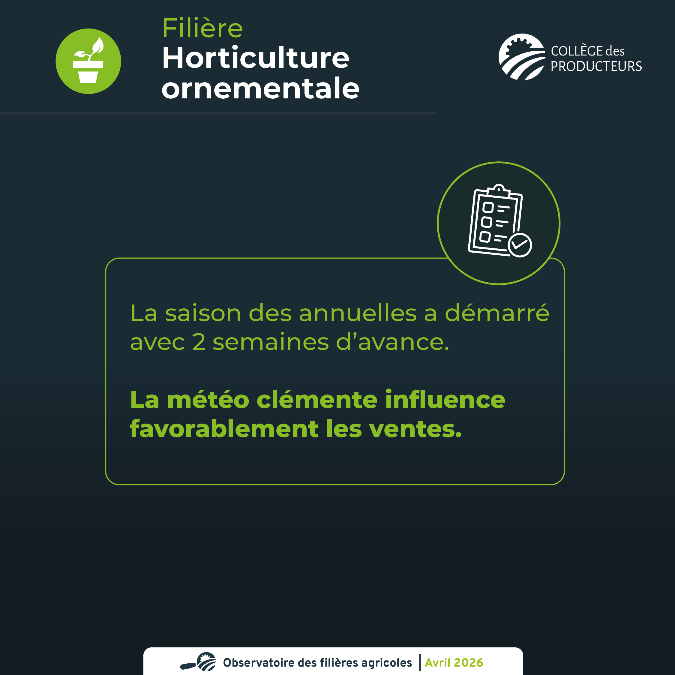 La saison des annuelles a démarré avec 2 semaines d'avance. La météo clémente influence favorablement les ventes.