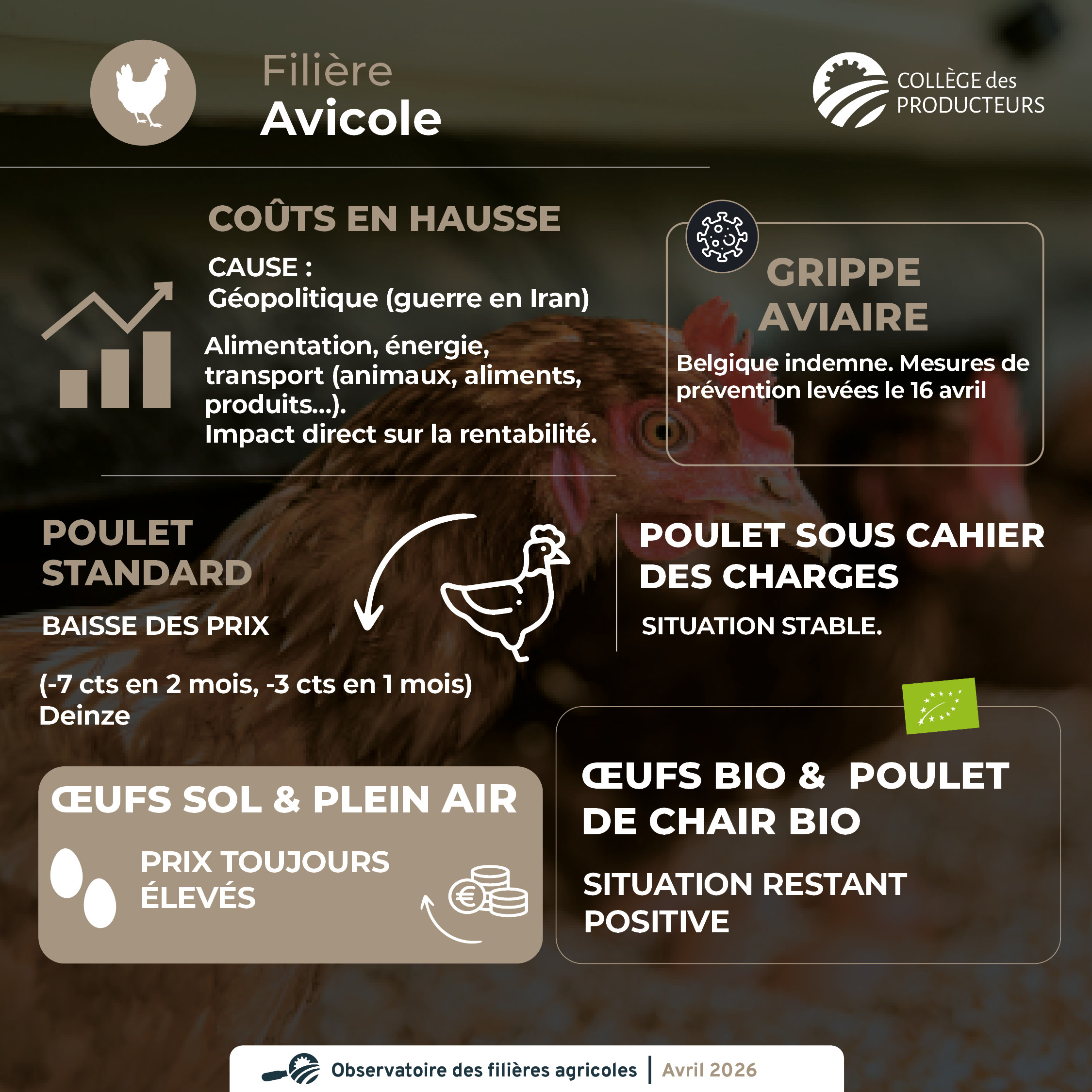 - Poulet de chair Bio : situation restant positive.