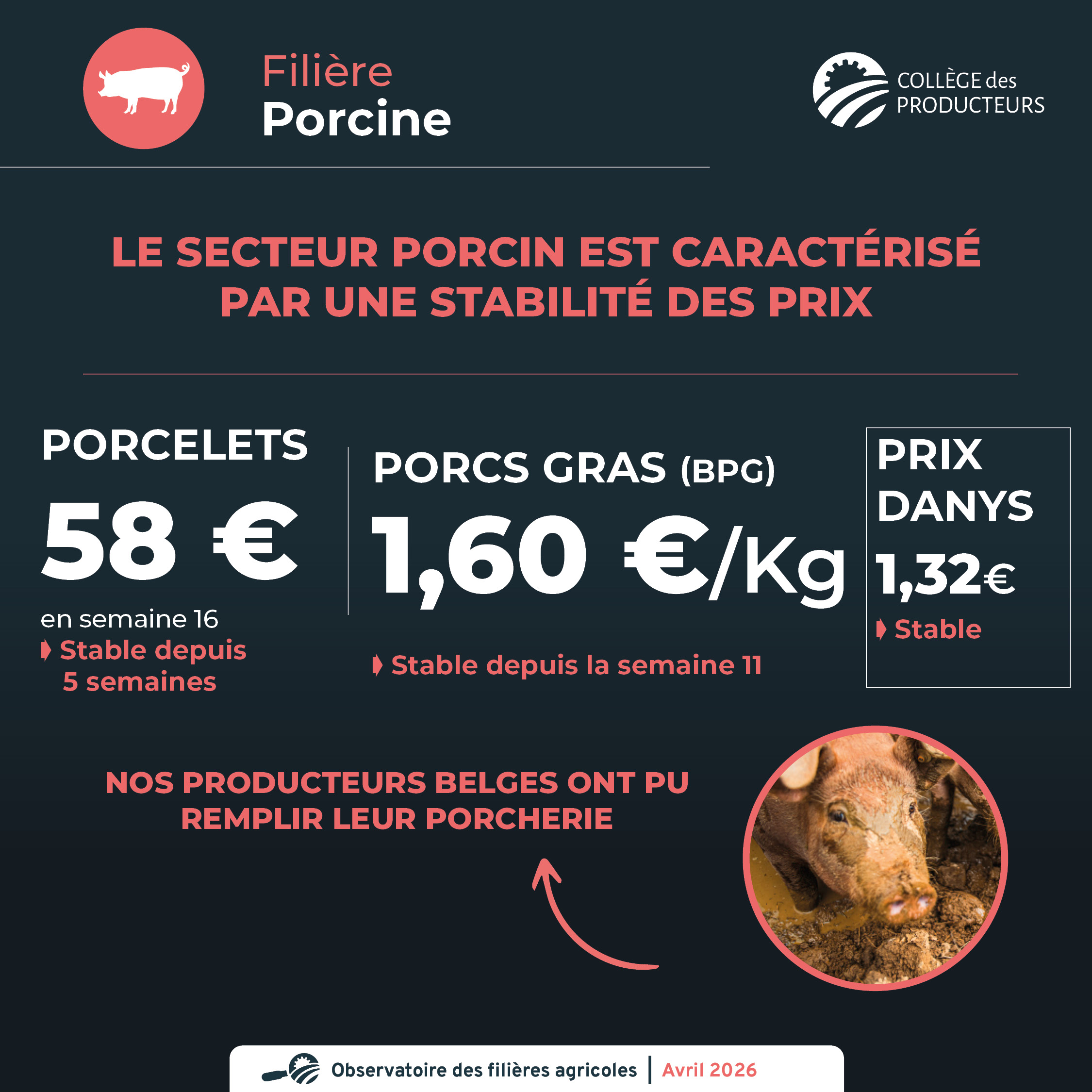 Le secteur porcin est caractérisé par une stabilité des prix depuis la dernière note :